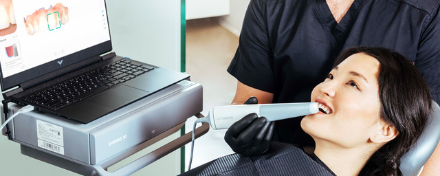当院ではSHINNING3D社のAoralscan 3を導入しております。口腔内を撮影するスキャンチップが小型で、スキャン時患者様の不快感を軽減できる点が特徴です。さらに高速カメラが搭載されていることから、スピーディーに歯型を取ることができます。またスキャン時によりむし歯、歯周疾患などを写真撮影でき、レポートにして患者様に発効することが可能になりました。レポートは紙出力、データ送付、QRコードにて発効可能です。(患者様の携帯電話でそのまま送れます。)
